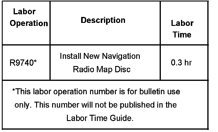 Install the new map disc into the navigation radio and verify proper operation of the navigation system. The conditions listed above will be corrected automatically the first time the new map disc is inserted into the radio. No setup procedure is required.