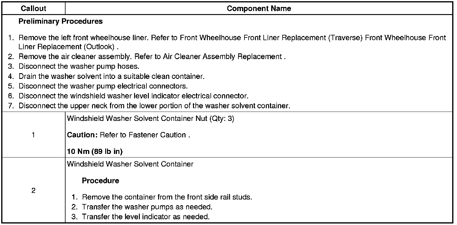 Windshield Washer Solvent Container Replacement (Acadia and Enclave)