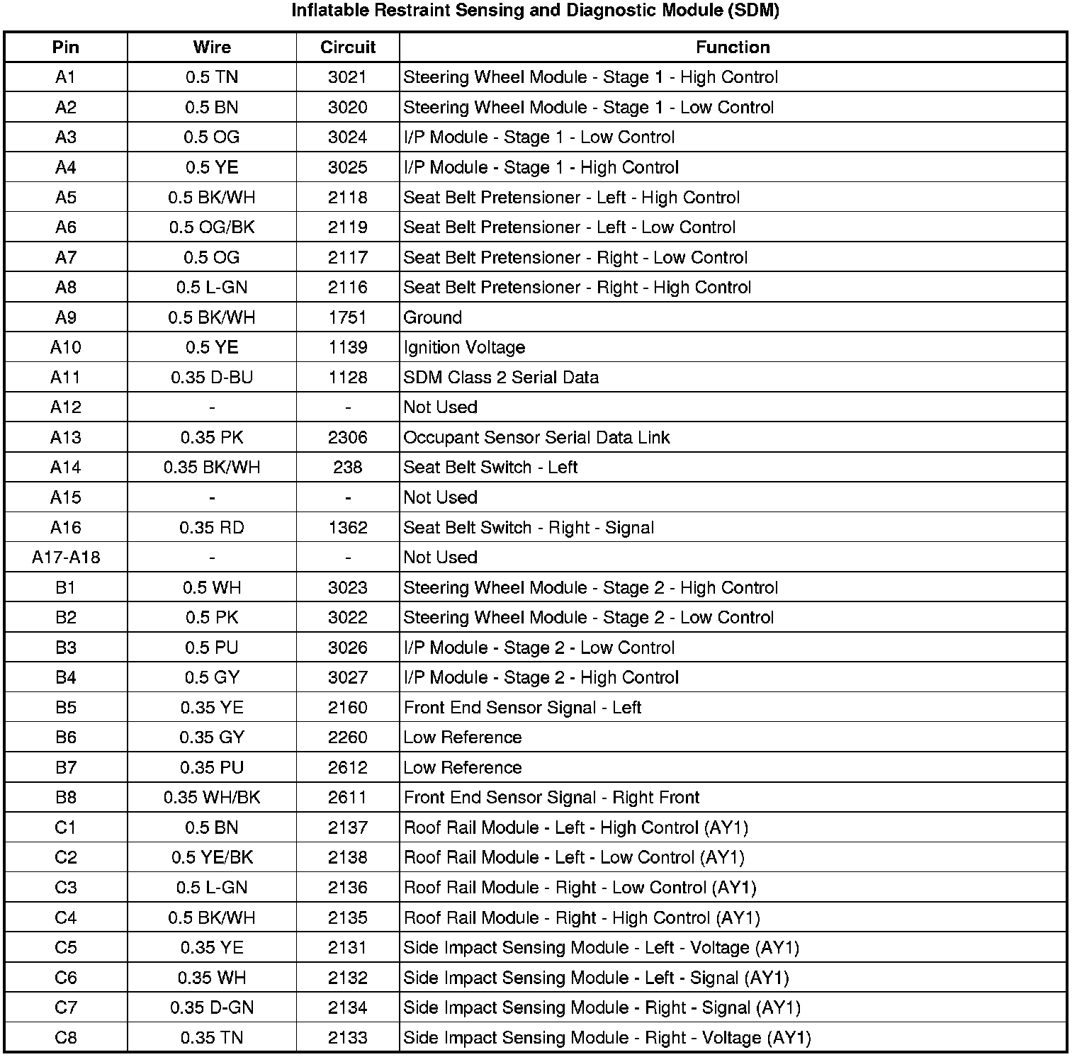 Inflatable Restraint Sensing and Diagnostic Module (SDM)