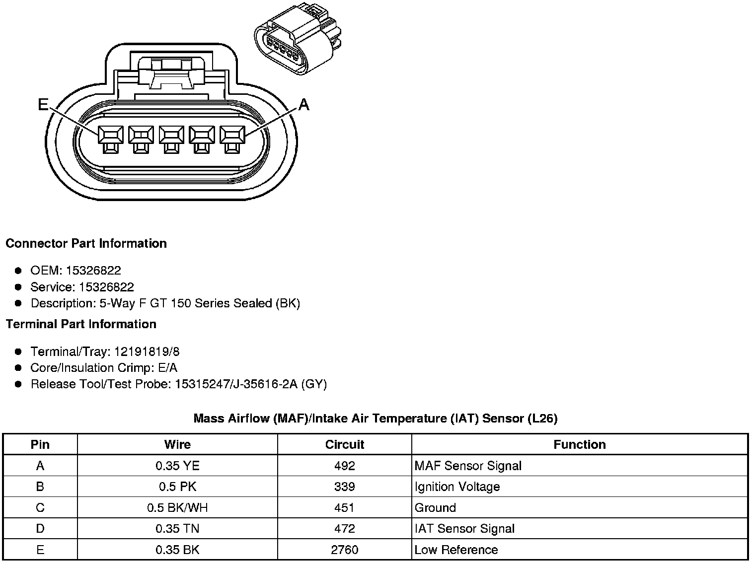 Mass Airflow (MAF)/Intake Air Temperature (IAT) Sensor (L26)