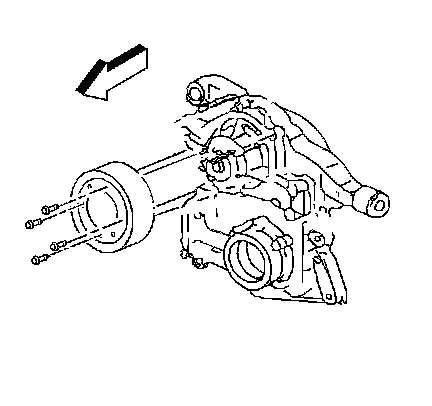 38. Remove the heater hoses from the drive belt tensioner. Refer to Heater Inlet Hose Replacement (L26) (Heater Inlet Hose Replacement)Heater Inlet Hose Replacement (LS4) (Heater Inlet Hose Replacement) and to Heater Outlet Hose Replacement (L26) (Heater Outlet Hose Replacement)Heater Outlet Hose Replacement (LS4) (Heater Outlet Hose Replacement).