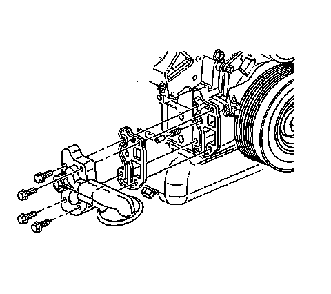 6. If replacing the engine front cover, install the pressure relief valve, the oil filter adapter and the oil filter adapter bolts to the engine front cover.