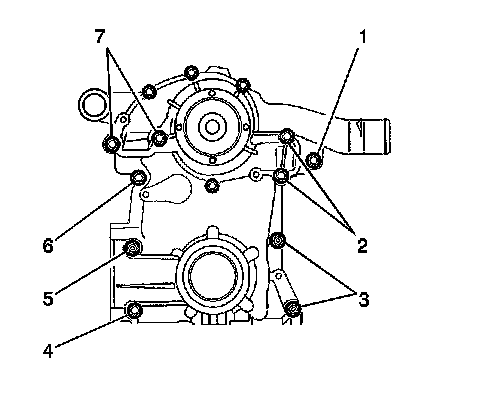 30. If replacing the engine front cover, remove the water pump from the engine front cover.