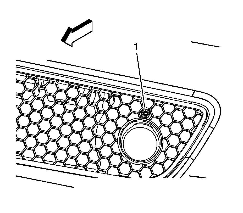 3. Through the opening in the lower front grille above the fog lamp, access the fog lamp vertical adjuster screw (1).
