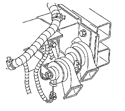 1. Position the horn assembly to the frame rail extension. Insert the horn anti-rotation tab into the slot on the frame rail.