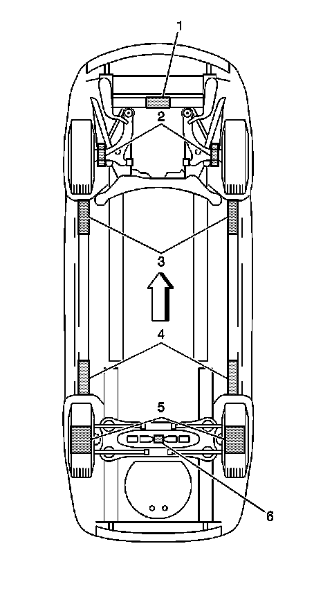 Danger: To avoid any vehicle damage, serious personal injury or death when major components are removed from the vehicle and the vehicle is supported by a hoist, support the vehicle with jack stands at the opposite end from which the components are being removed and strap the vehicle to the hoist.