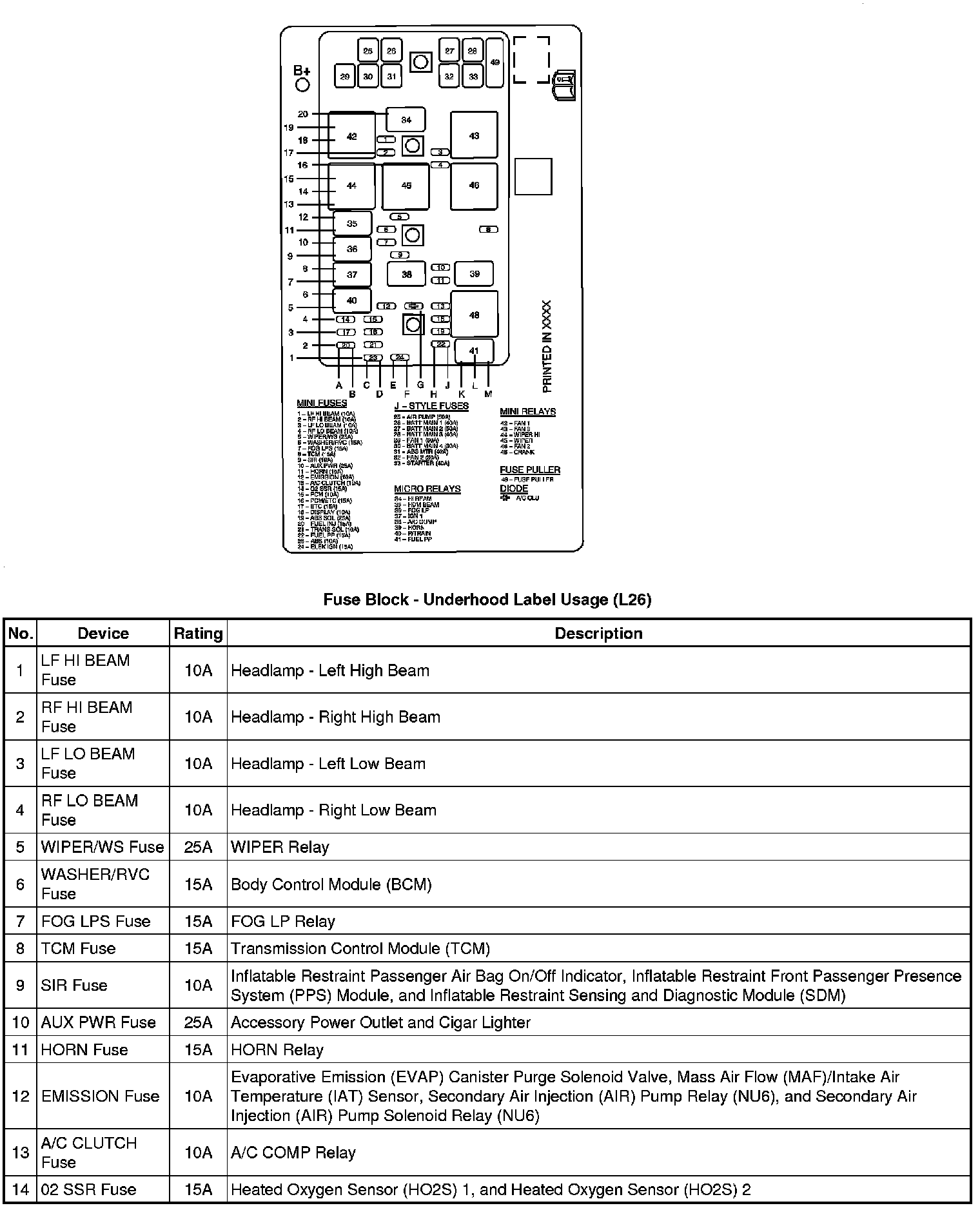 Fuse Block - Underhood Bottom View (L26)