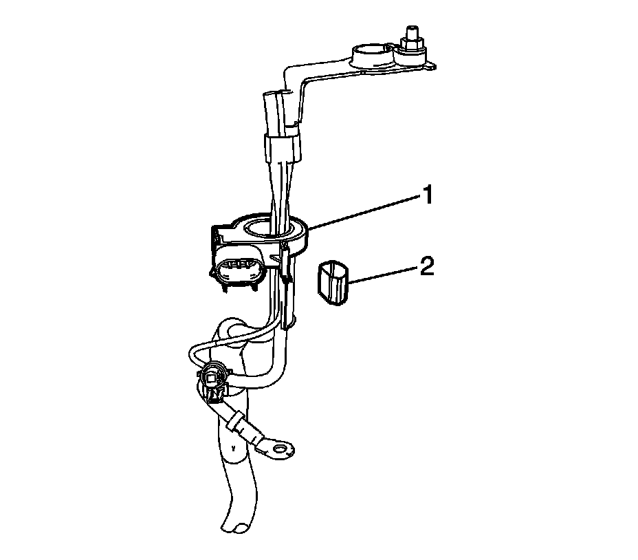 1. Slide the NEW battery current sensor (1) up onto the negative battery cable.