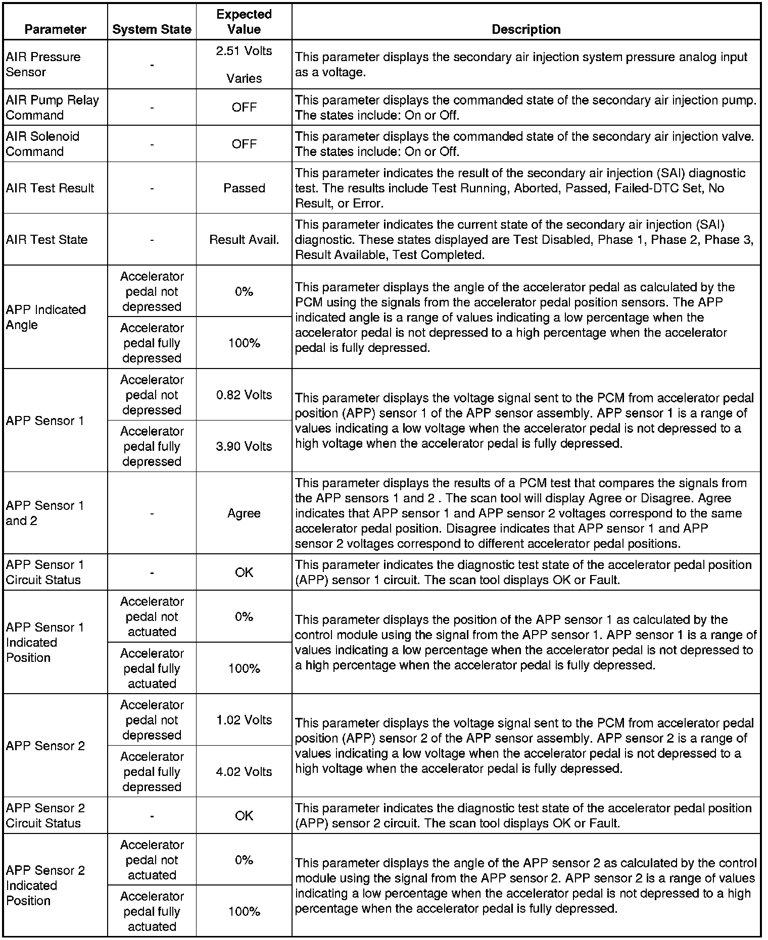 The Engine Control Module Scan Tool Data List contains all engine-related parameters that are available on the scan tool. The list is arranged in alphabetical order. A given parameter may appear in any one of the data lists, and in some cases may appear more than once, or in more than one data list in order to group certain related parameters together.