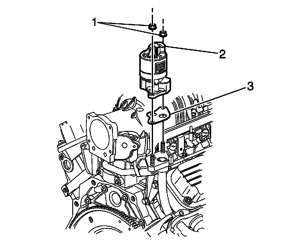 1. Remove the exhaust gas recirculation (EGR) valve (2). Refer to Exhaust Gas Recirculation Valve Replacement (Service and Repair).