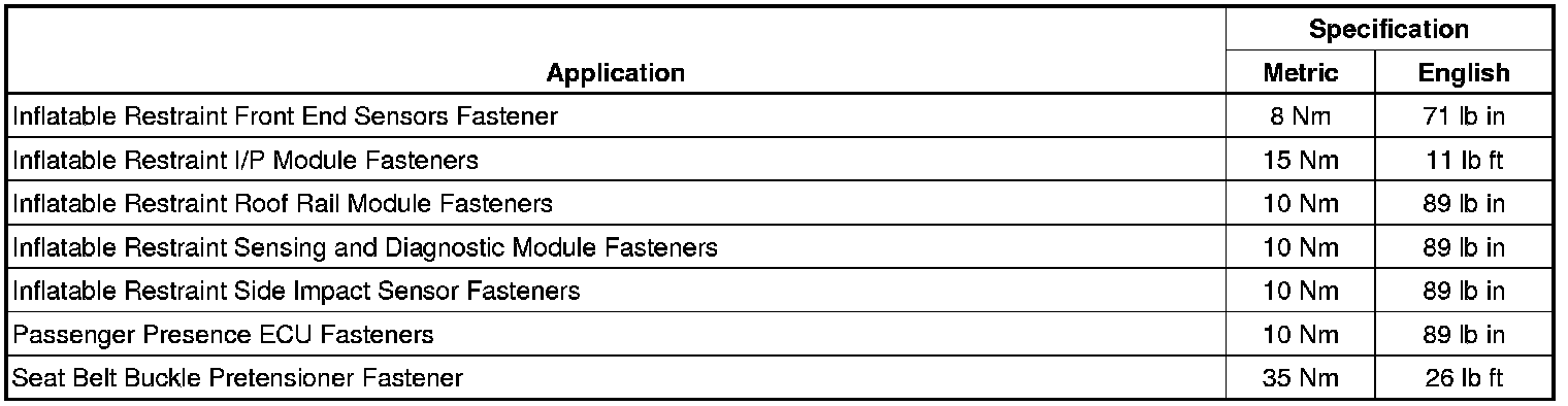 Fastener Tightening Specifications