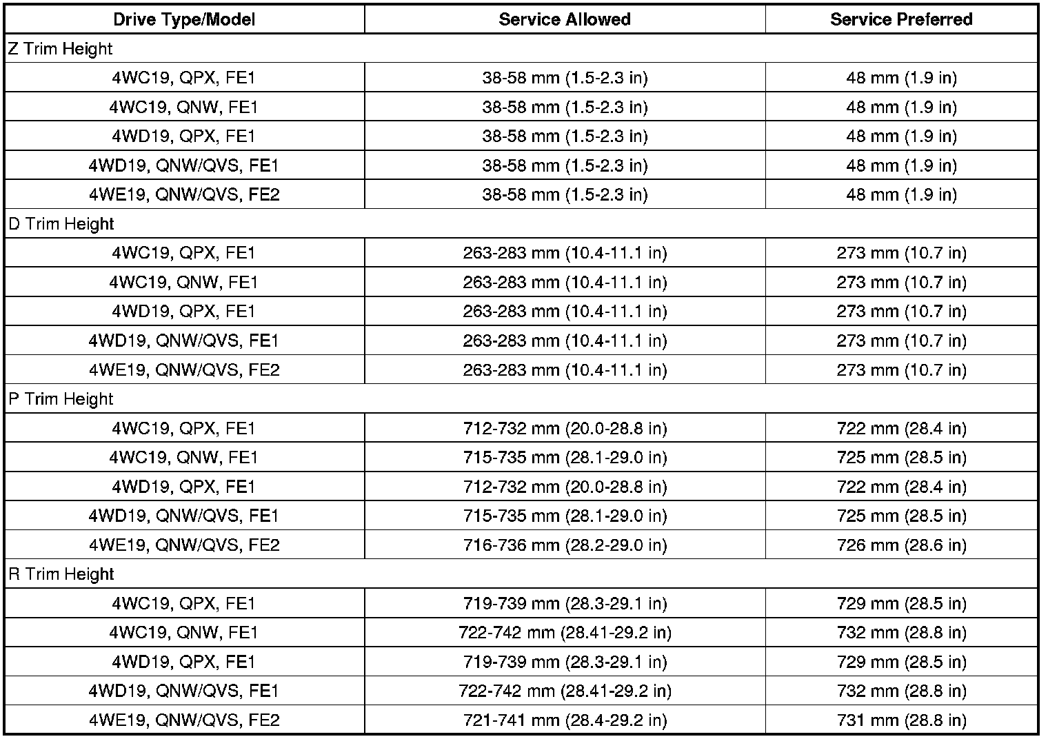 Trim Height Specifications