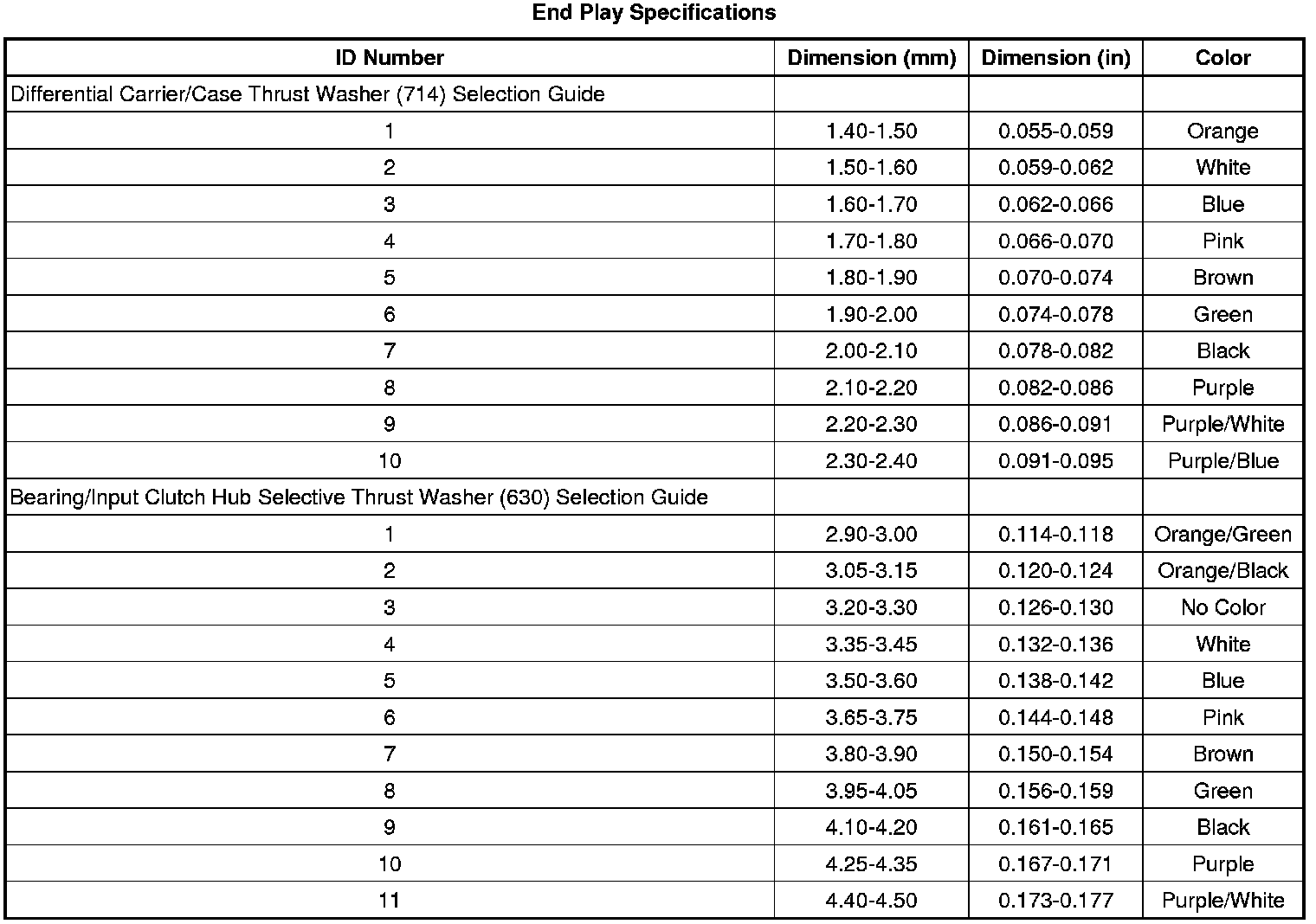 End Play Specifications