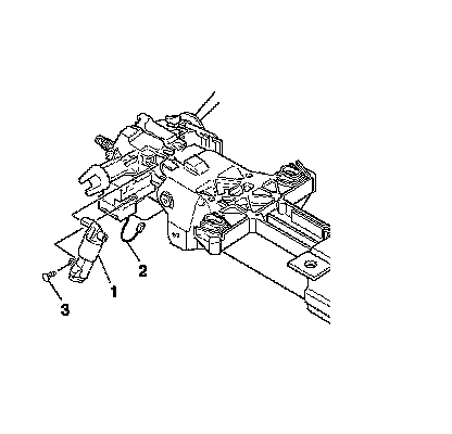 15. Remove the tapping screw (3) from the ignition lock cylinder solenoid (1) mounting hole and the ignition switch assembly.