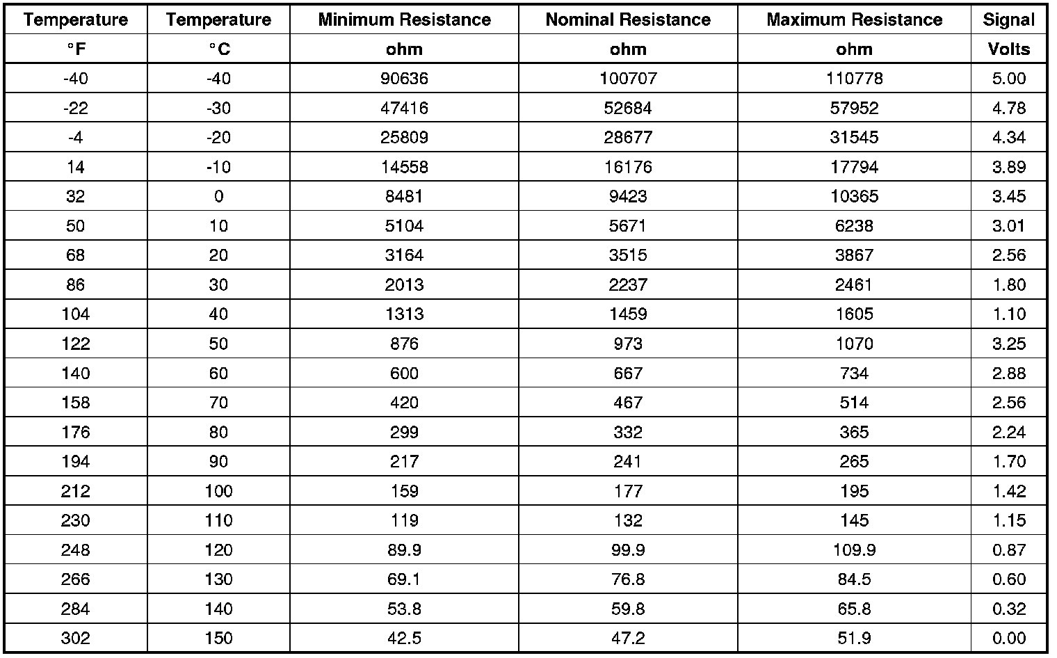 Transmission Fluid Temperature Sensor Specifications