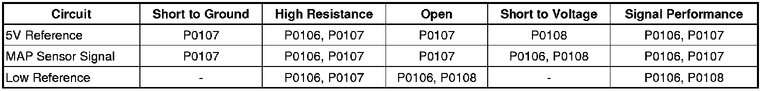 The ECM detects that the MAP sensor voltage is less than 0.05V for greater than 5 seconds.
