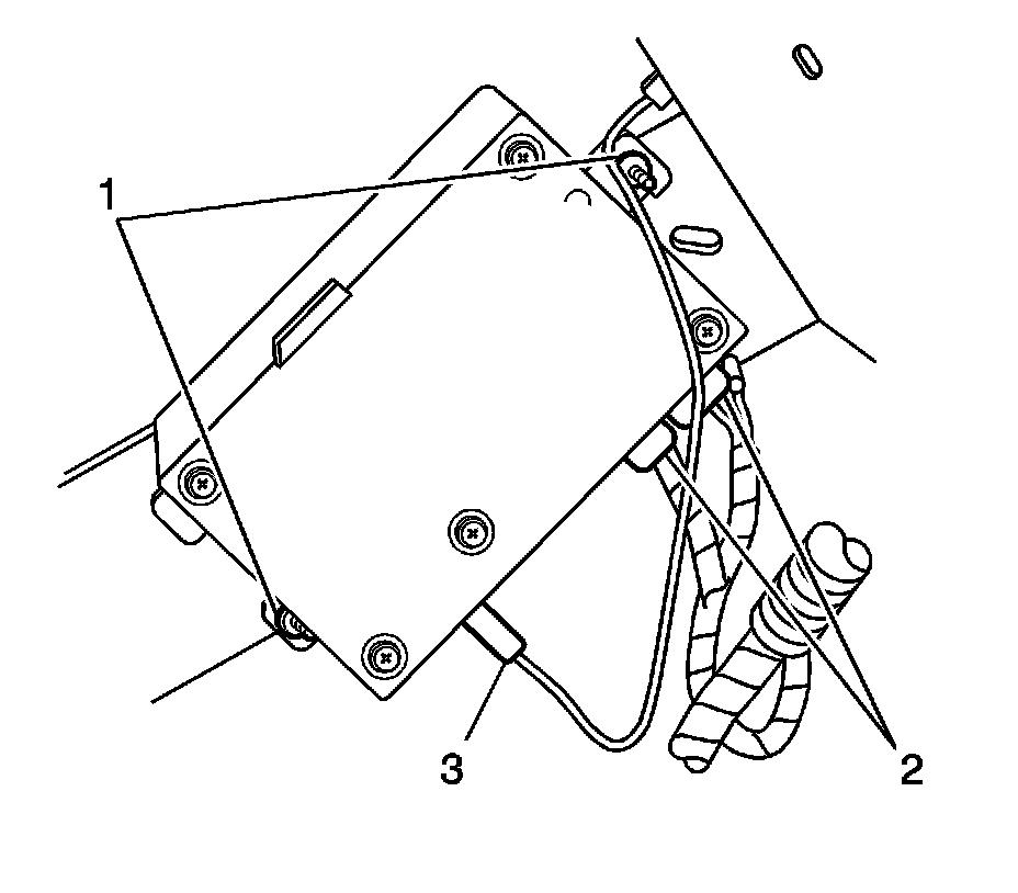 2. Disconnect the antenna (3) and electrical connections (2) from the vehicle communication interface module (VCIM).