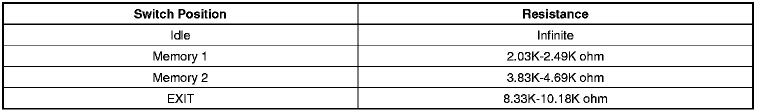 • If not the specified value, test or replace the memory seat adjuster switch.