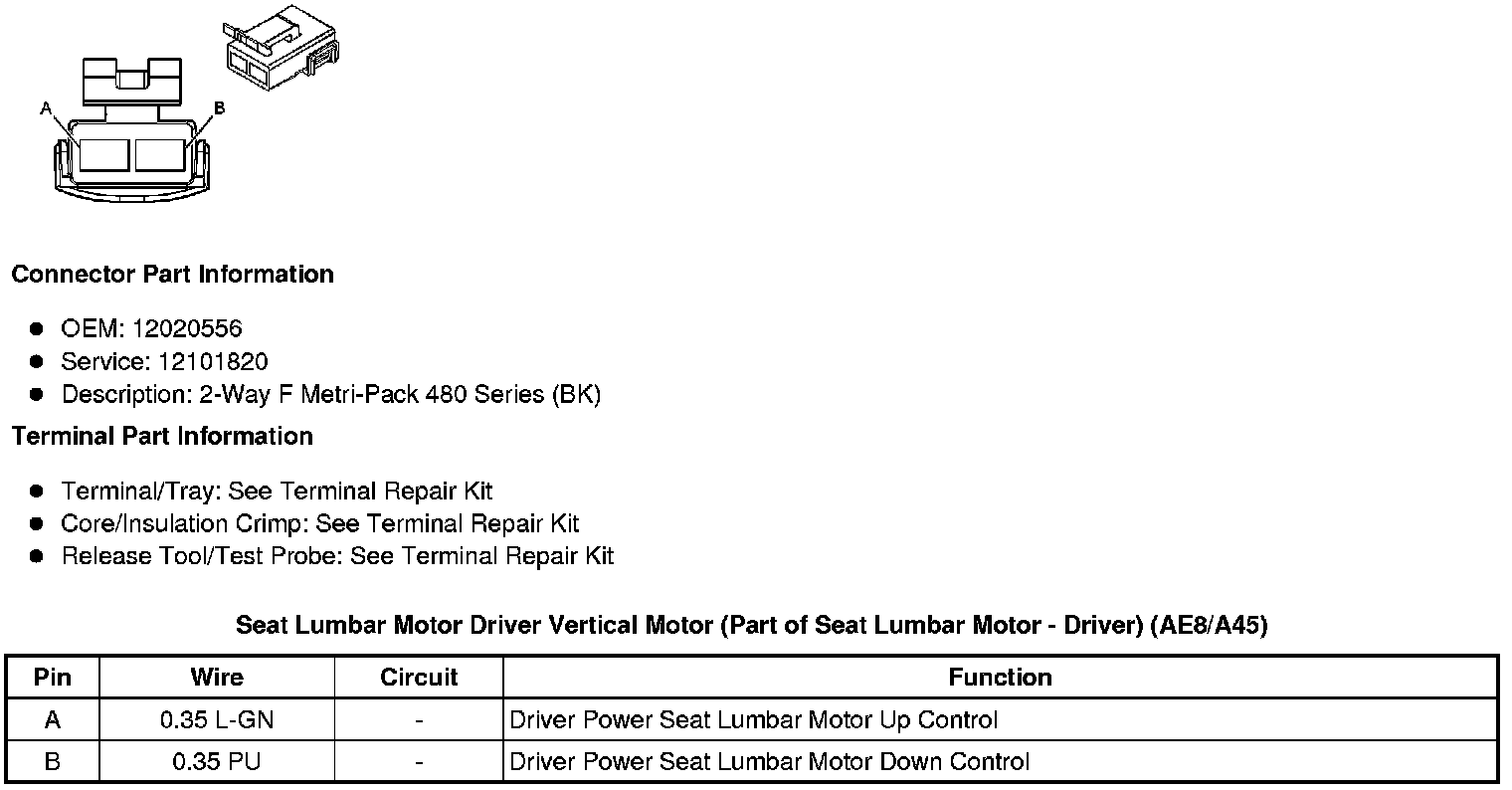 Seat Lumbar Motor Driver Vertical Motor (Part of Seat Lumbar Motor - Driver) (AE8/A45)