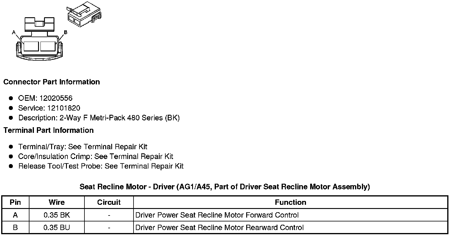 Seat Recline Motor - Driver (AG1/A45, Part of Driver Seat Recline Motor Assembly)