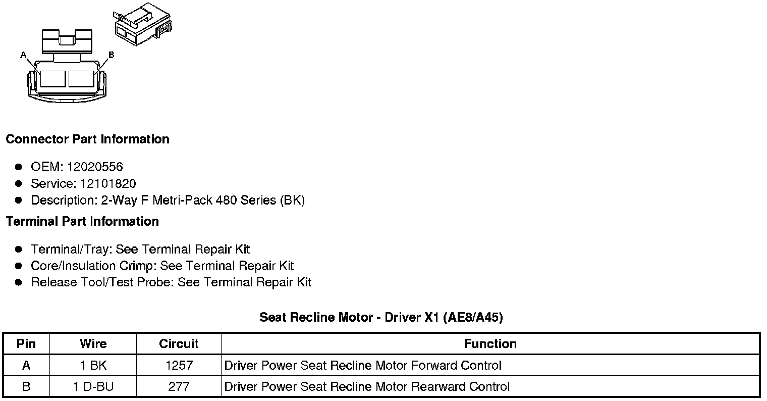 Seat Recline Motor - Driver X1 (AE8/A45)