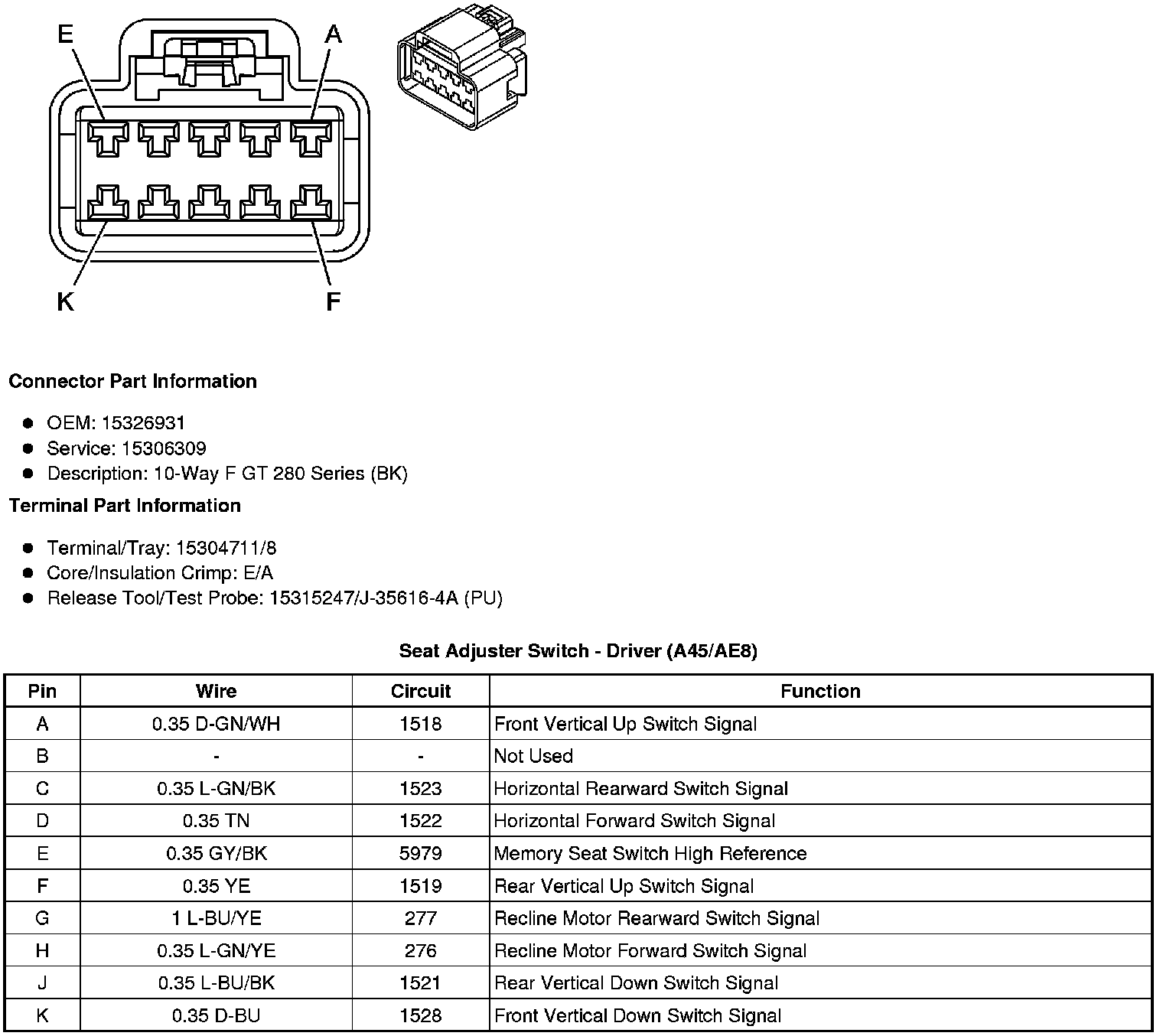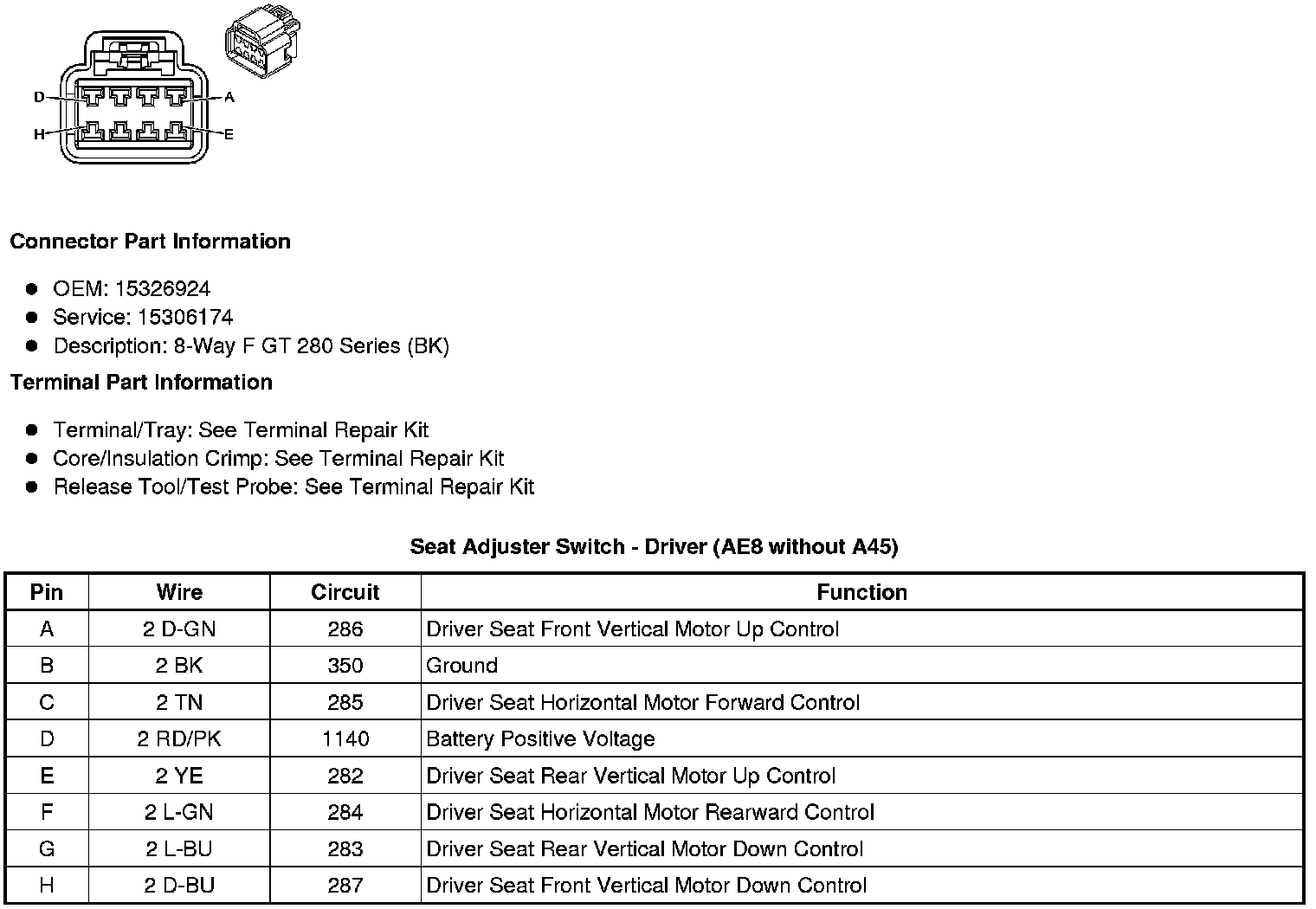 Seat Adjuster Switch - Driver (AE8 without A45)
