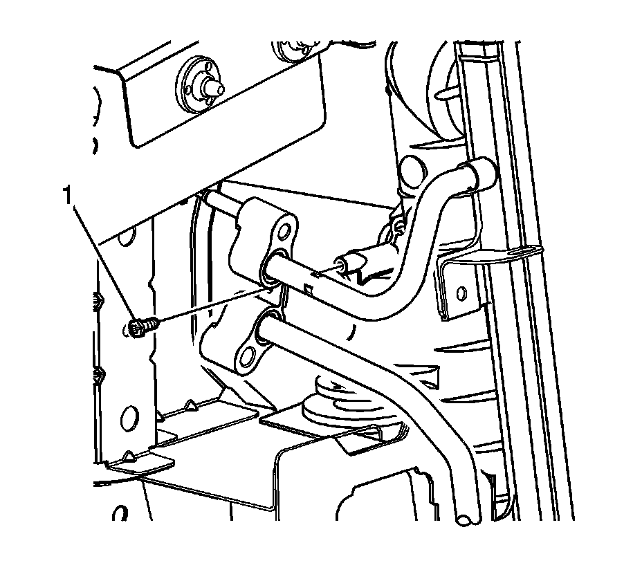 10. Remove the condenser lines to radiator mounting bolt (1).