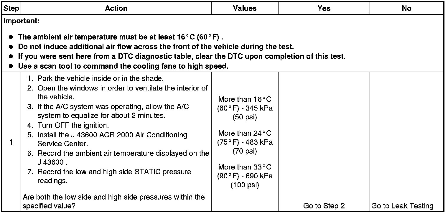 1. This step determines if the A/C system has at least the minimum refrigerant charge required to operate the system without damage.