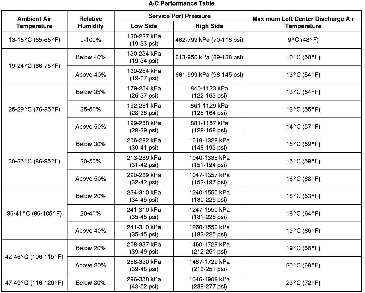 A/C System Pressure - Zone Classification