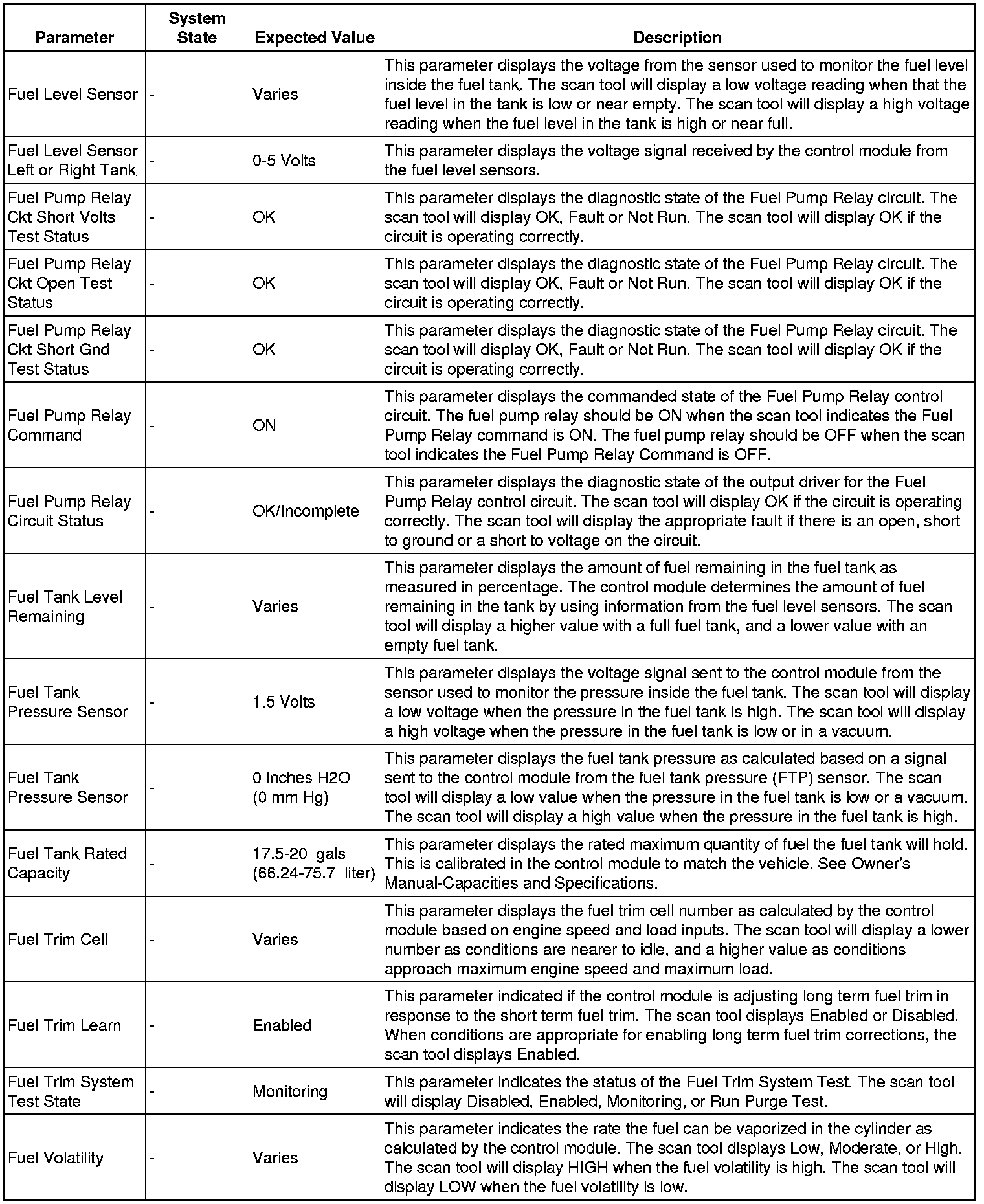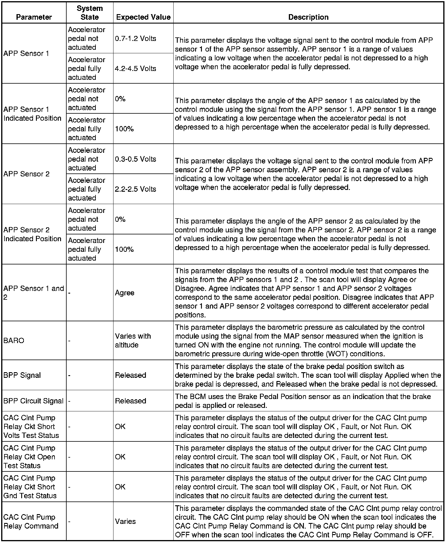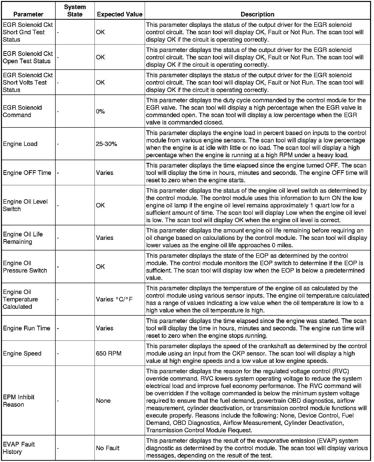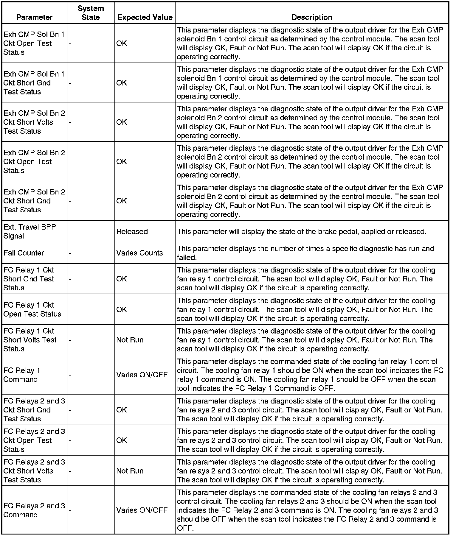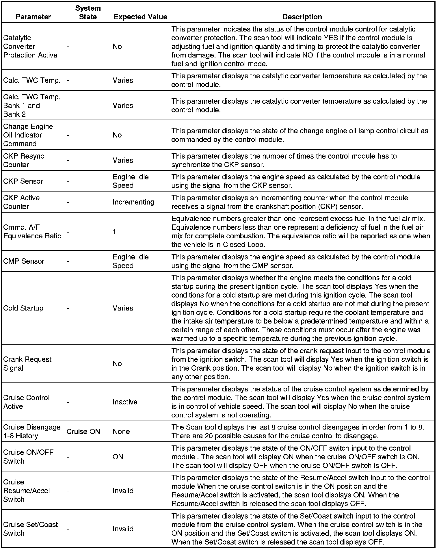 The Engine Control Module Scan Tool Data List contains all engine-related parameters that are available on the scan tool. The list is arranged in alphabetical order. A given parameter may appear in any one of the data lists, and in some cases may appear more than once, or in more than one data list in order to group certain related parameters together.