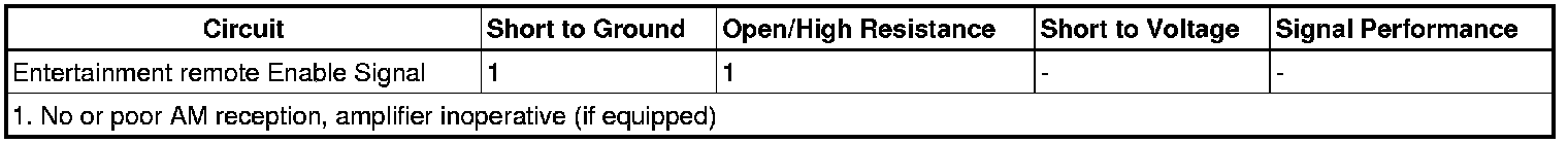 The multi-band antenna is located on the roof of the vehicle. A switched B+ output from the radio entertainment remote enable circuit is used to power the AM/FM portion of this antenna. The antenna enable circuit is also used to control the power state of the amplifier (if equipped) and the rear seat entertainment video display (if equipped).