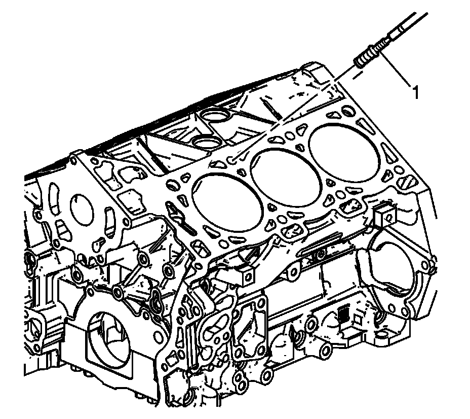 3. Position the alignment pin (1) through the bushing and into the cylinder head bolt hole.