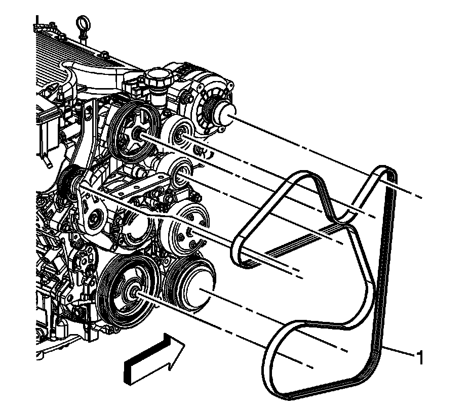 1. Install the drive belt (1) around the pulleys except for the tensioner pulley.