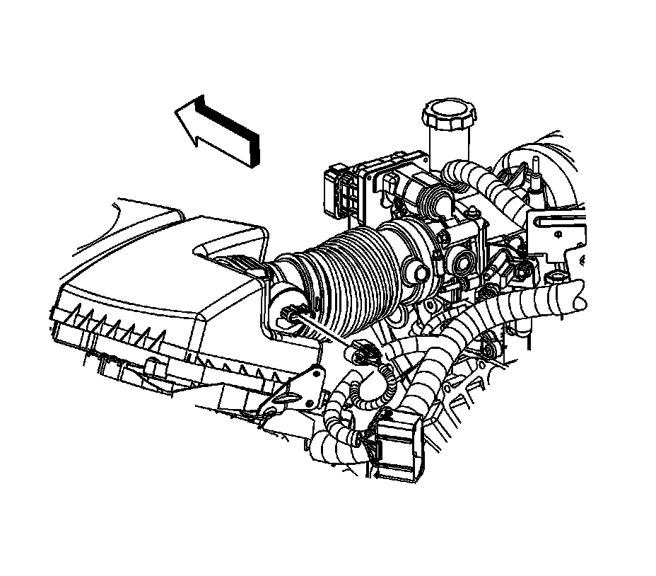 9. Install the air cleaner outlet duct to the throttle body and tighten the clamp to 4 Nm (35 lb in).