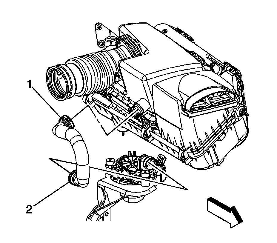 3. Disconnect the secondary air injection (AIR) hose quick connect fitting (1) from the air cleaner, if equipped. Refer to Plastic Collar Quick Connect Fitting Service (Plastic Collar Quick Connect Fitting Service).