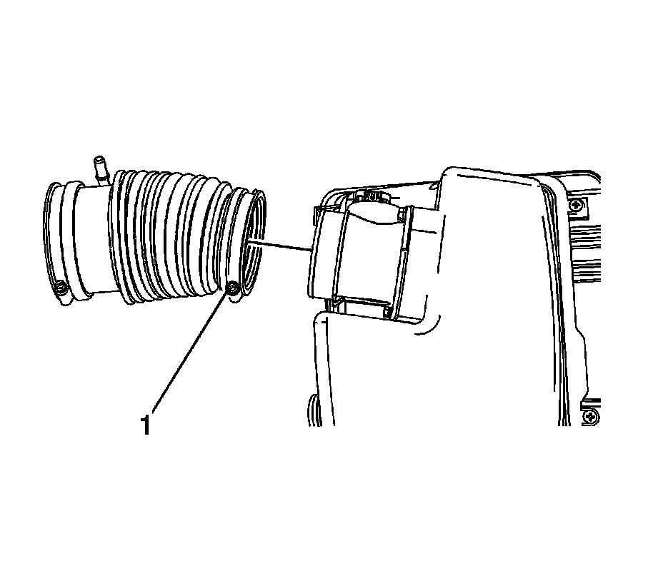 11. If replacing the air cleaner upper housing only perform the following steps, loosen the air cleaner outlet duct clamp (1) at the MAF/IAT sensor.