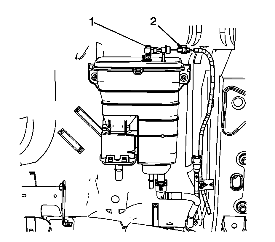 2. Disconnect the fuel tank wiring harness electrical connector (2) from the fuel tank pressure sensor.