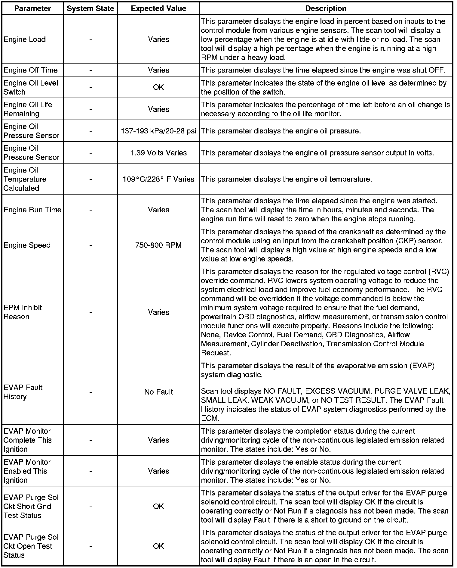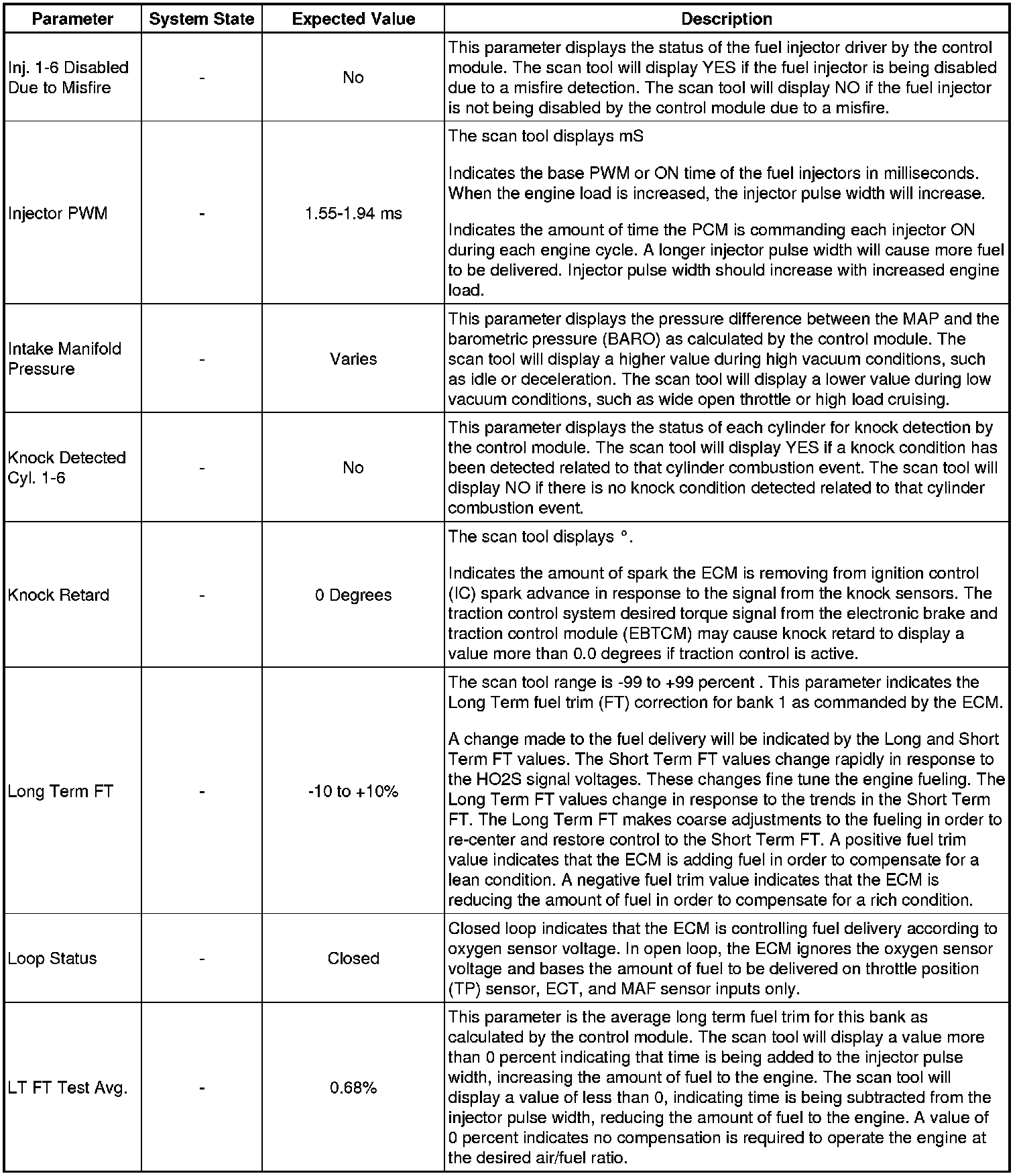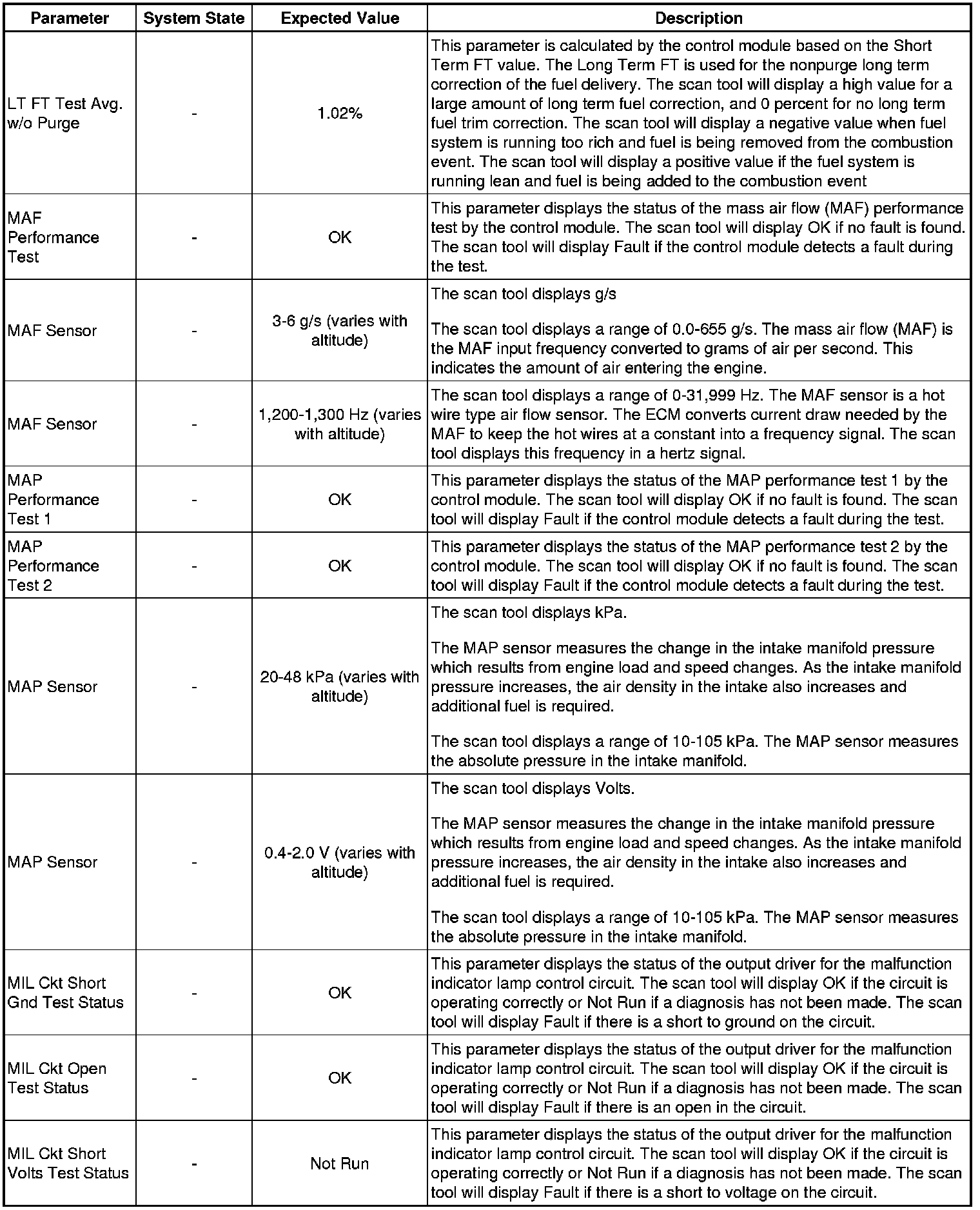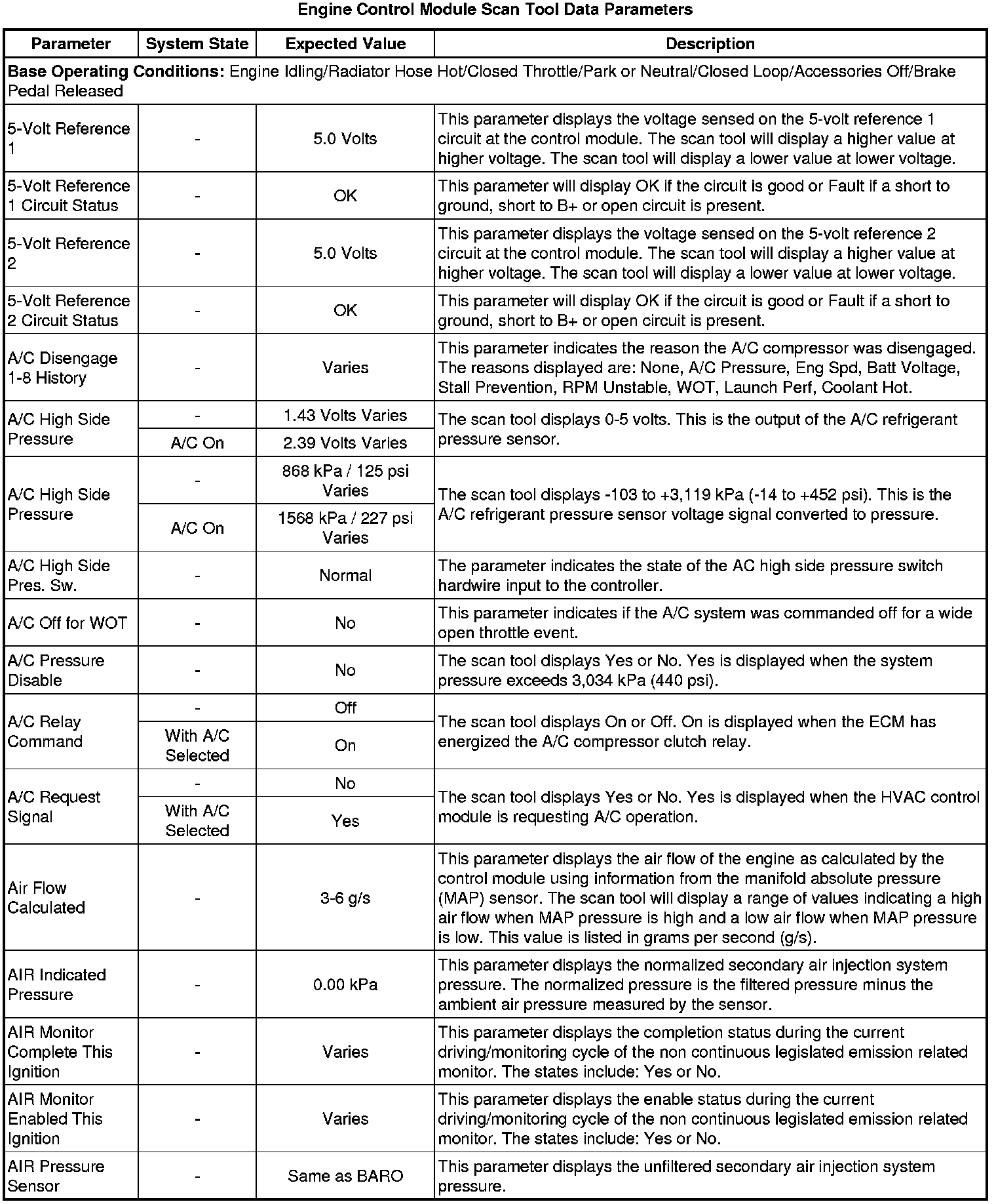 The Engine Scan Tool Data List represents values that would be seen on a normally running engine under the conditions listed below.