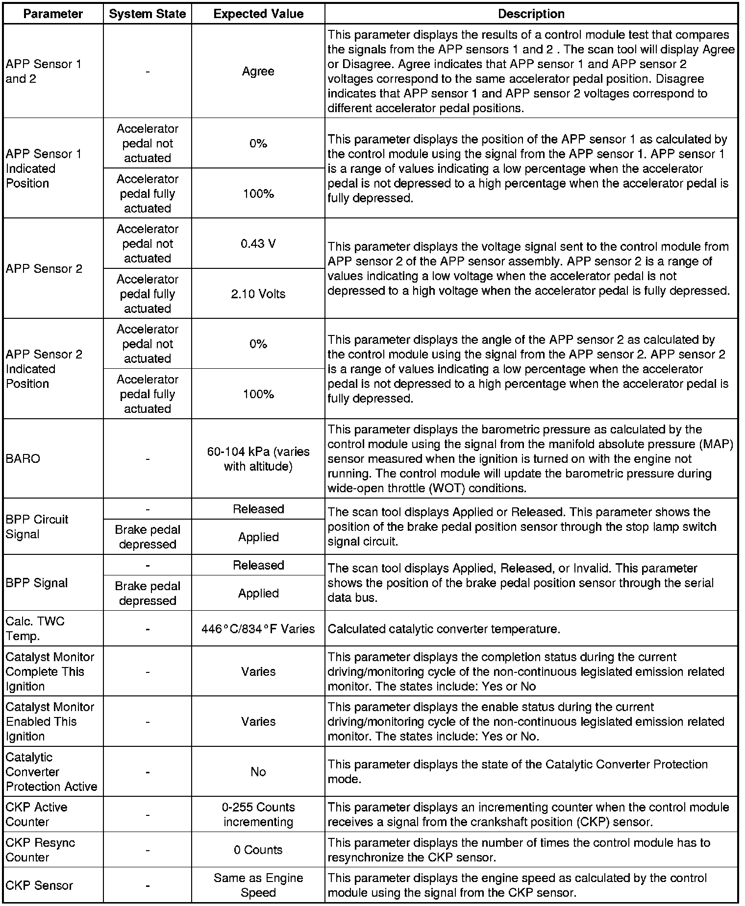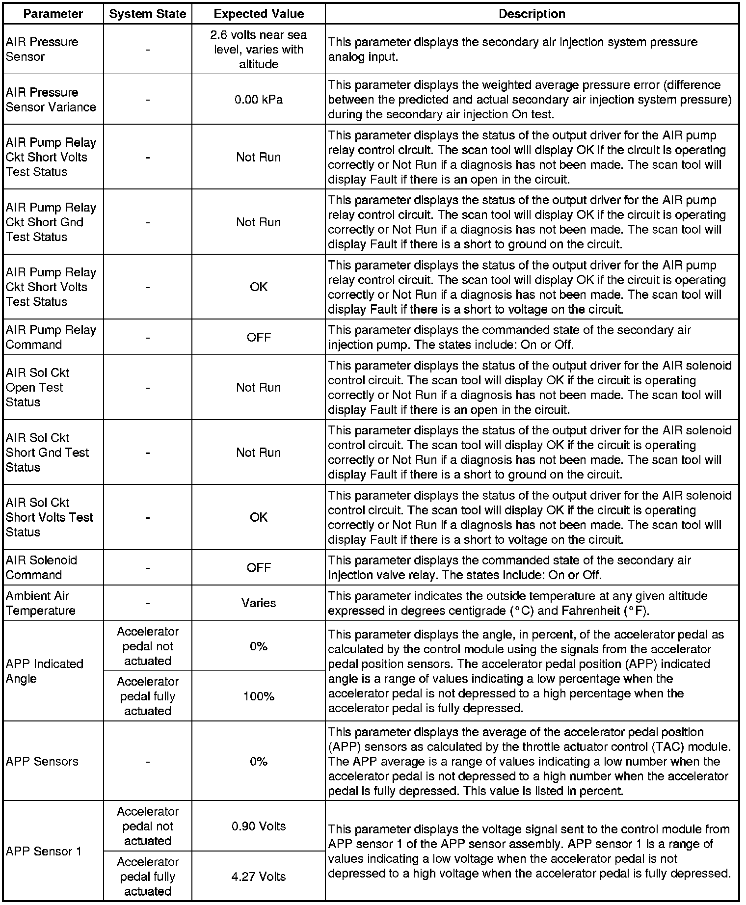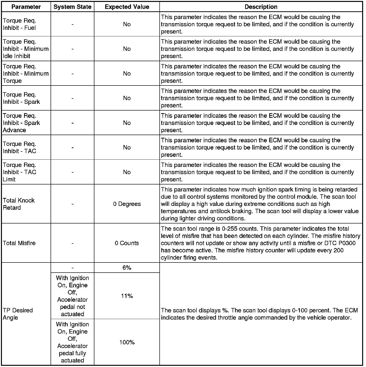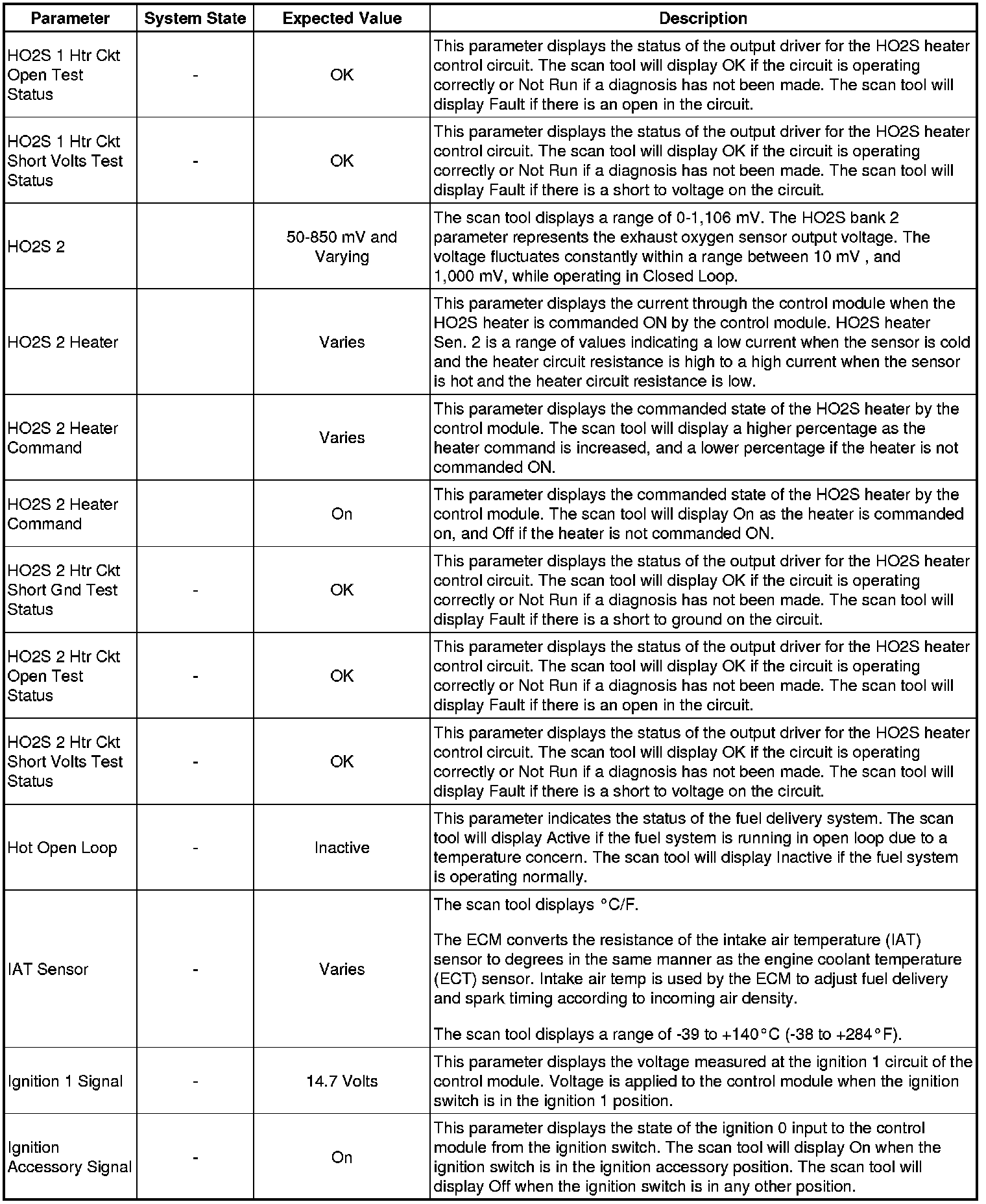The Engine Scan Tool Data List represents values that would be seen on a normally running engine under the conditions listed below.