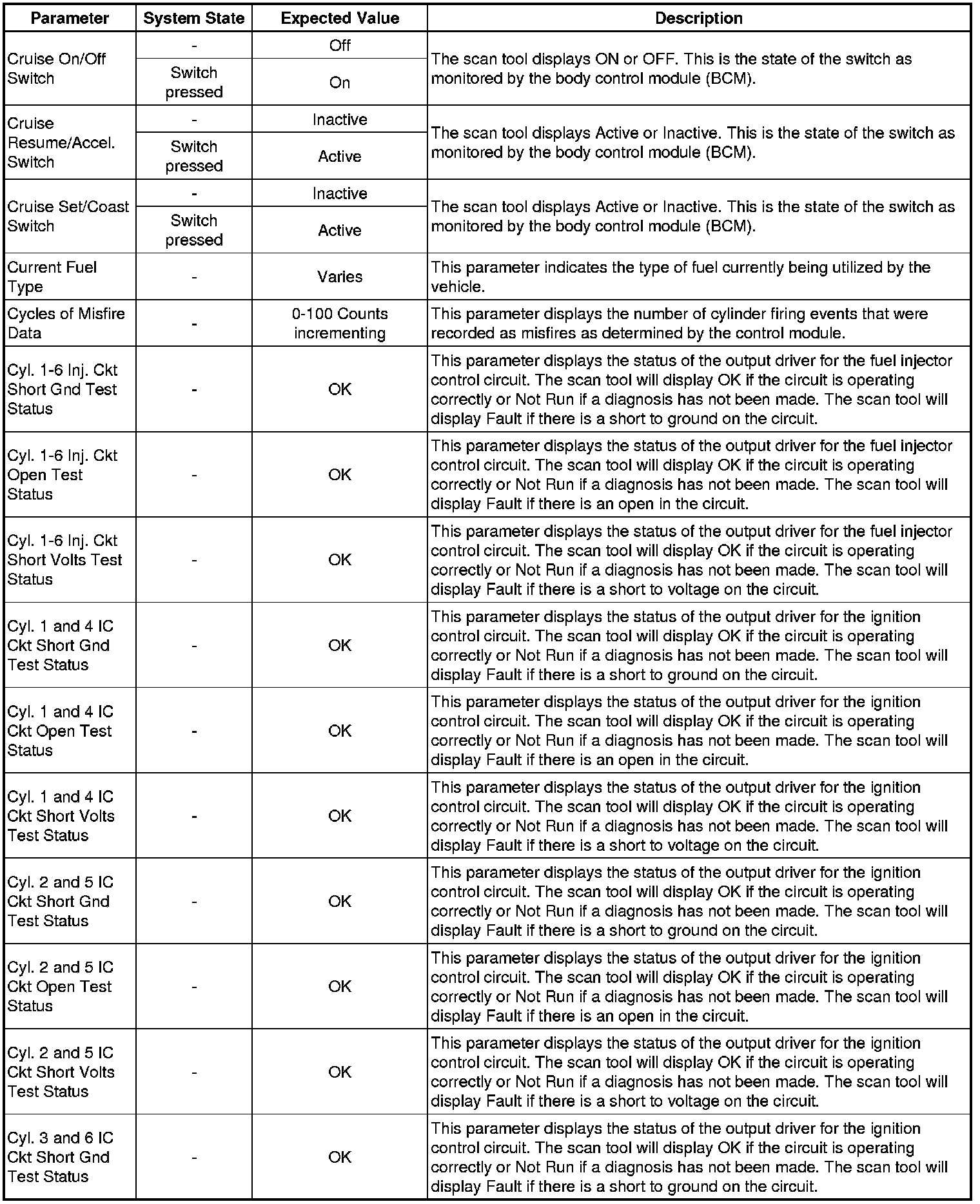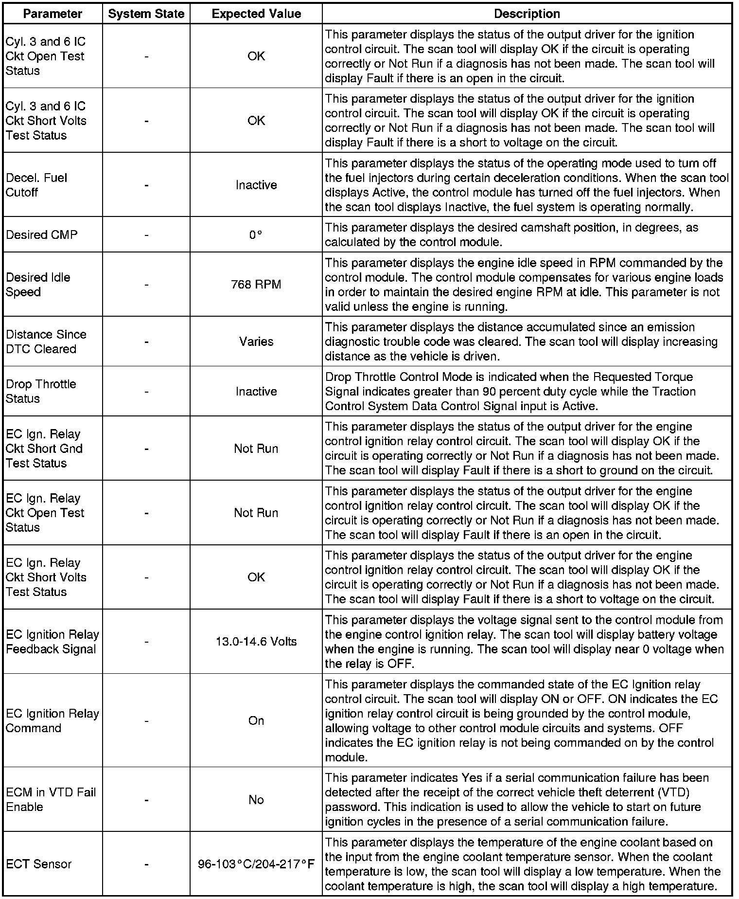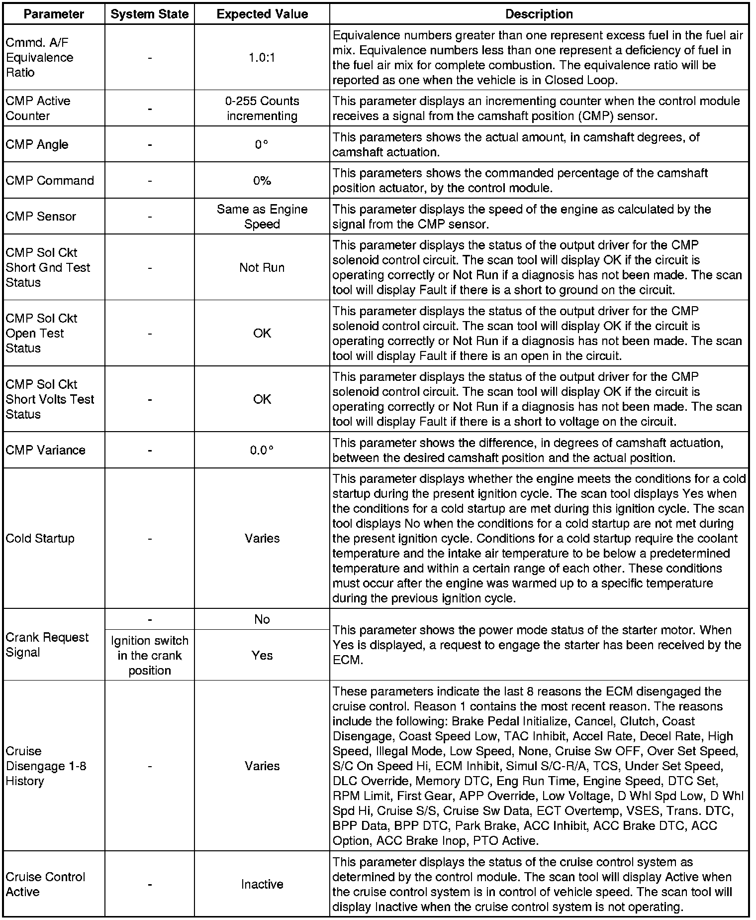 The Engine Control Module (ECM) Scan Tool Data List contains all ECM-related parameters that are available on the scan tool. The list is arranged in alphabetical order. A given parameter may appear in any one of the data lists, and in some cases may appear more than once, or in more than one data list in order to group certain related parameters together.