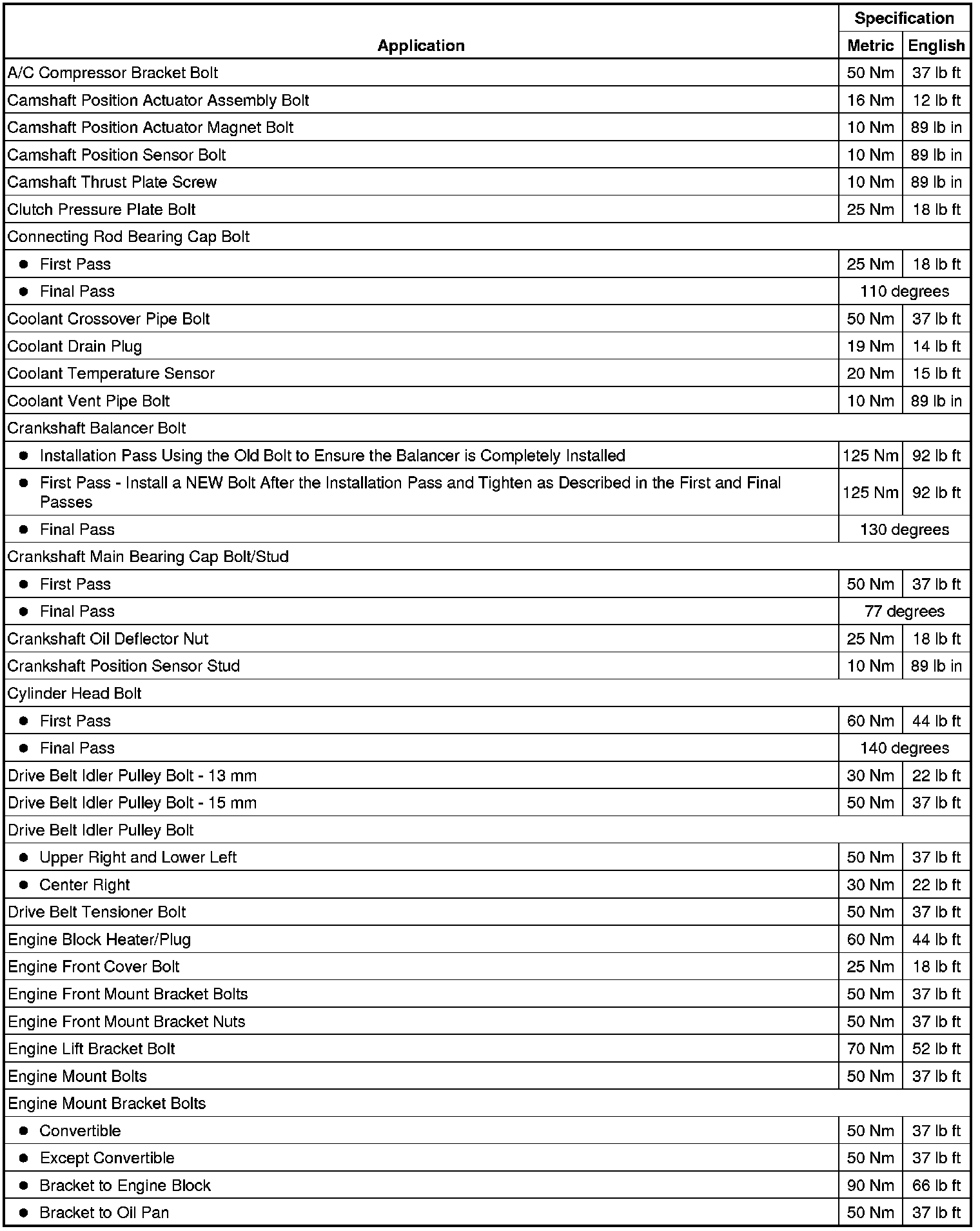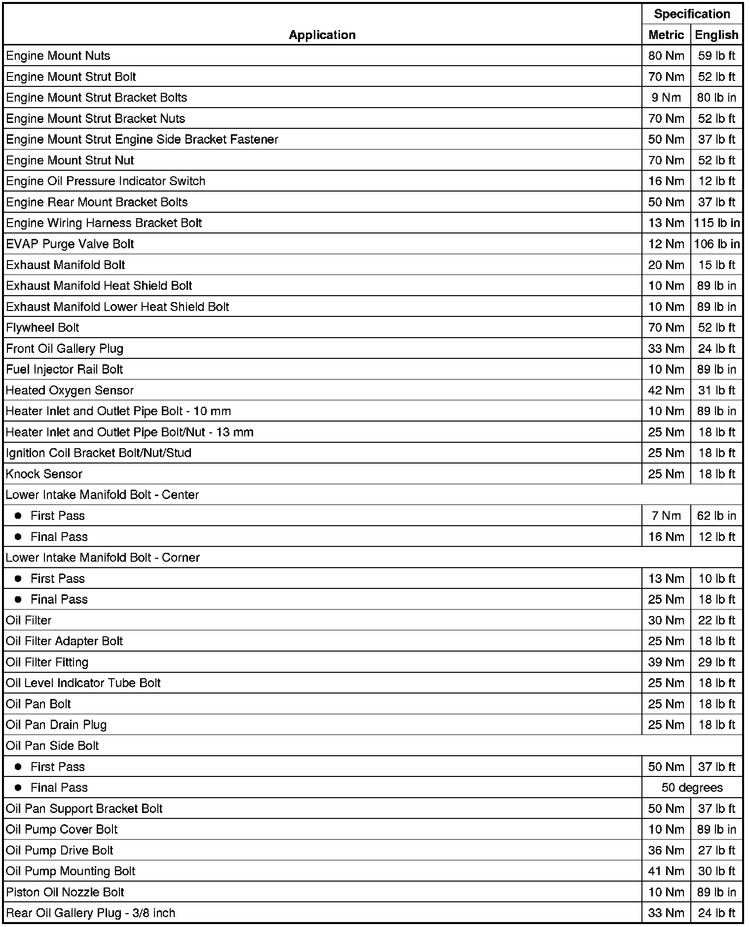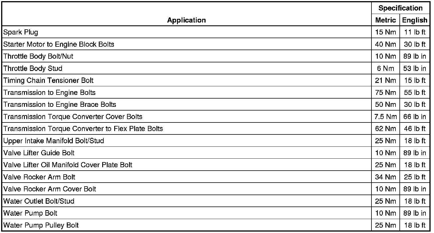 Fastener Tightening Specifications