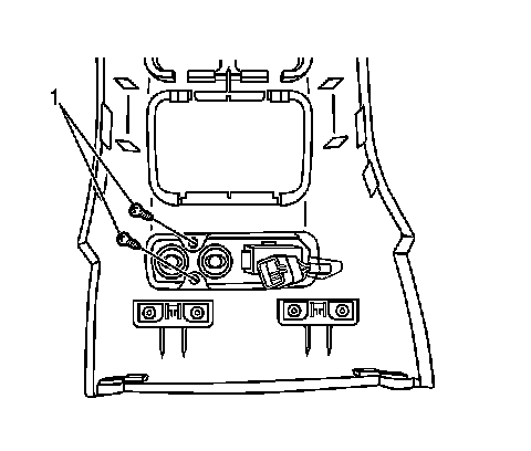 5. Remove the 2 screws (1) that retain the accessory outlet plate to the floor console.