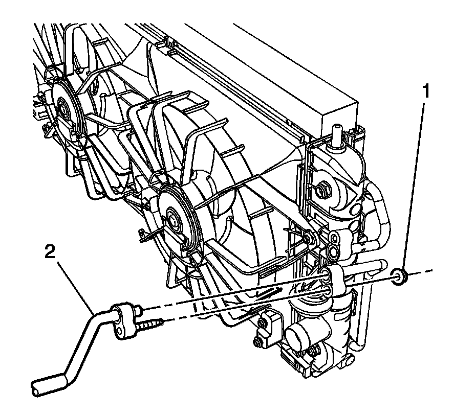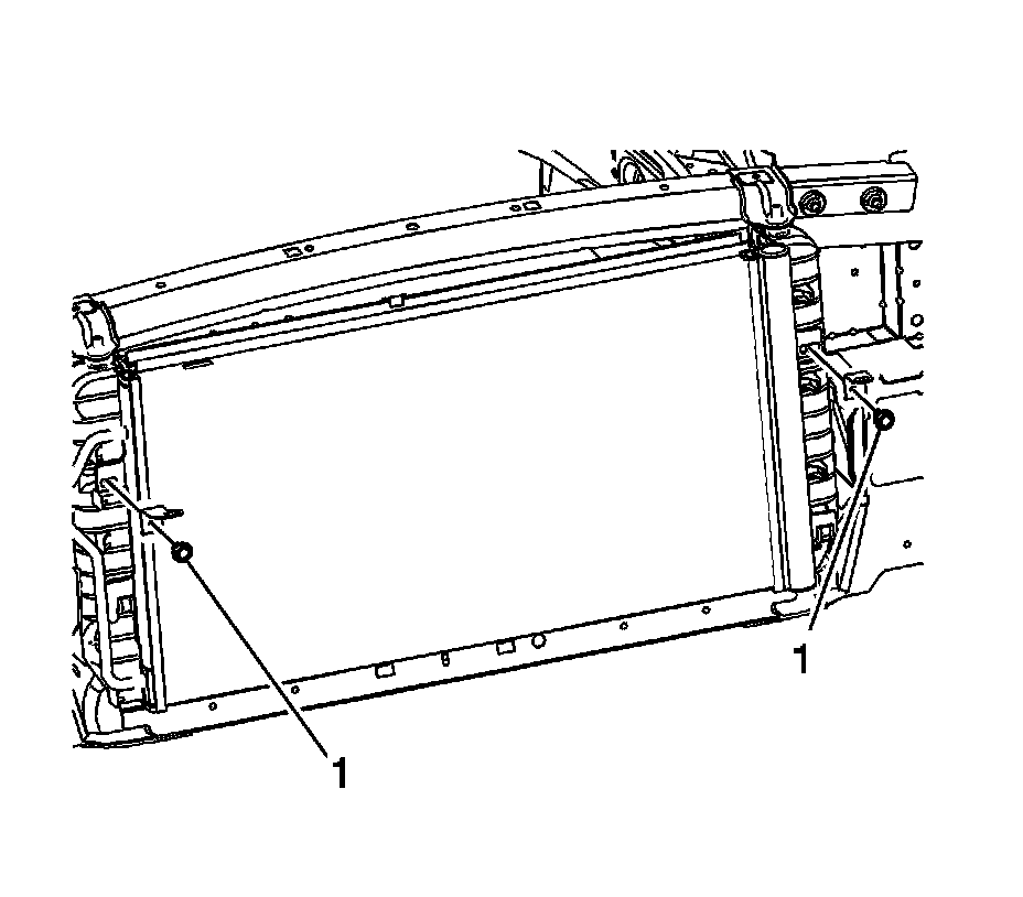 10. Remove the condenser lines to radiator mounting bolt (1).