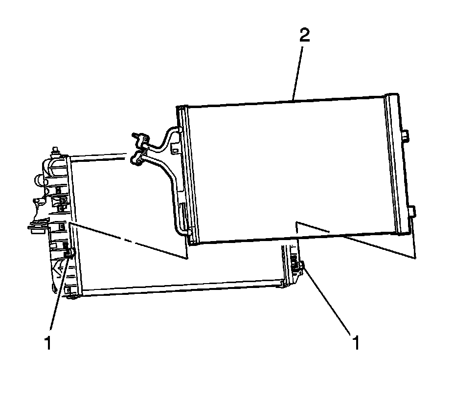 2. Install the condenser mounting bolts (1) and tighten to 9 Nm (80 lb in).