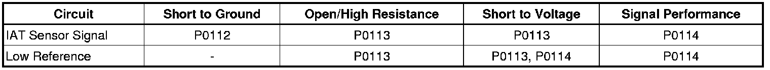 * An IAT sensor signal circuit that is shorted to the MAF sensor ignition circuit can cause a DTC P0113 and/or P0114 to set.