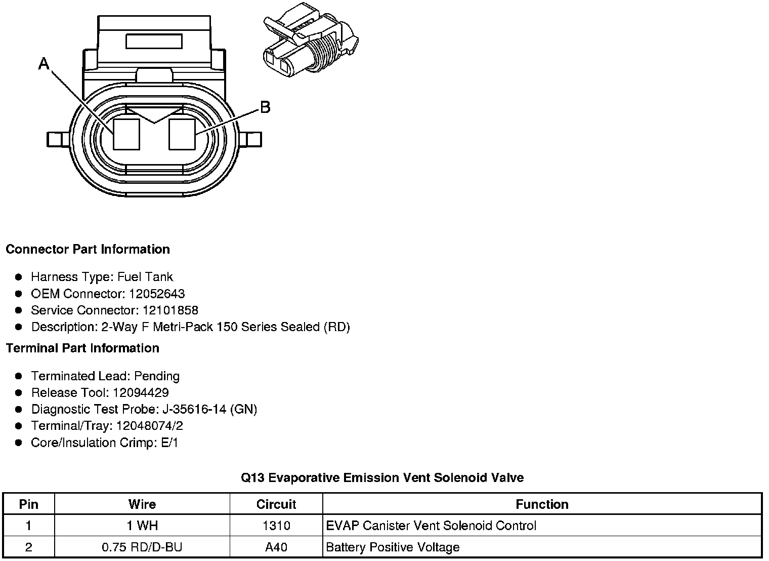 Q13 Evaporative Emission Vent Solenoid Valve