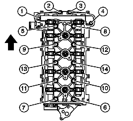 30. Remove the cylinder head bolts in the sequence shown. Discard the bolts.
