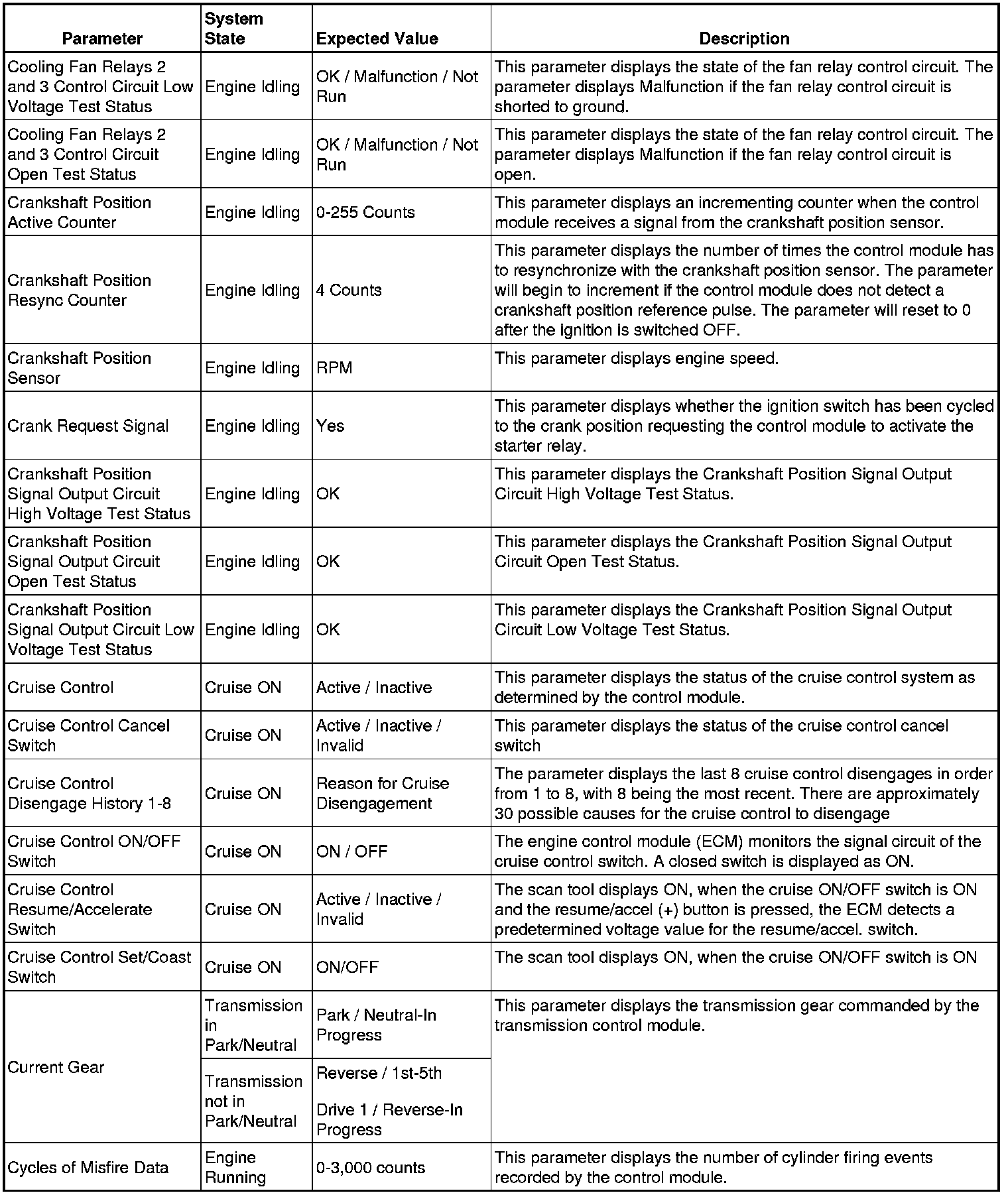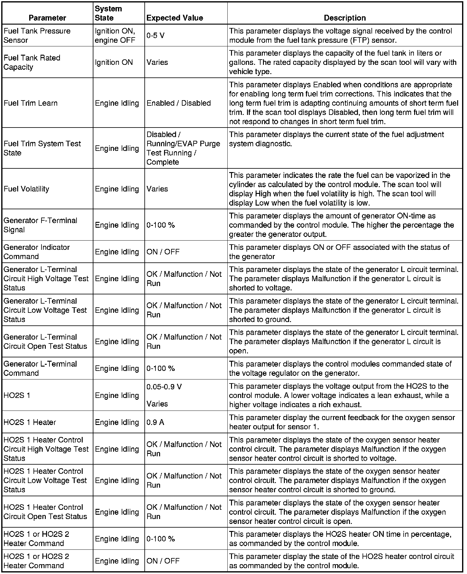 The Engine Control Module Scan Tool Data List contains all engine-related parameters that are available on the scan tool. The list is arranged in alphabetical order. A given parameter may appear in any one of the data lists, and in some cases may appear more than once, or in more than one data list in order to group certain related parameters together.