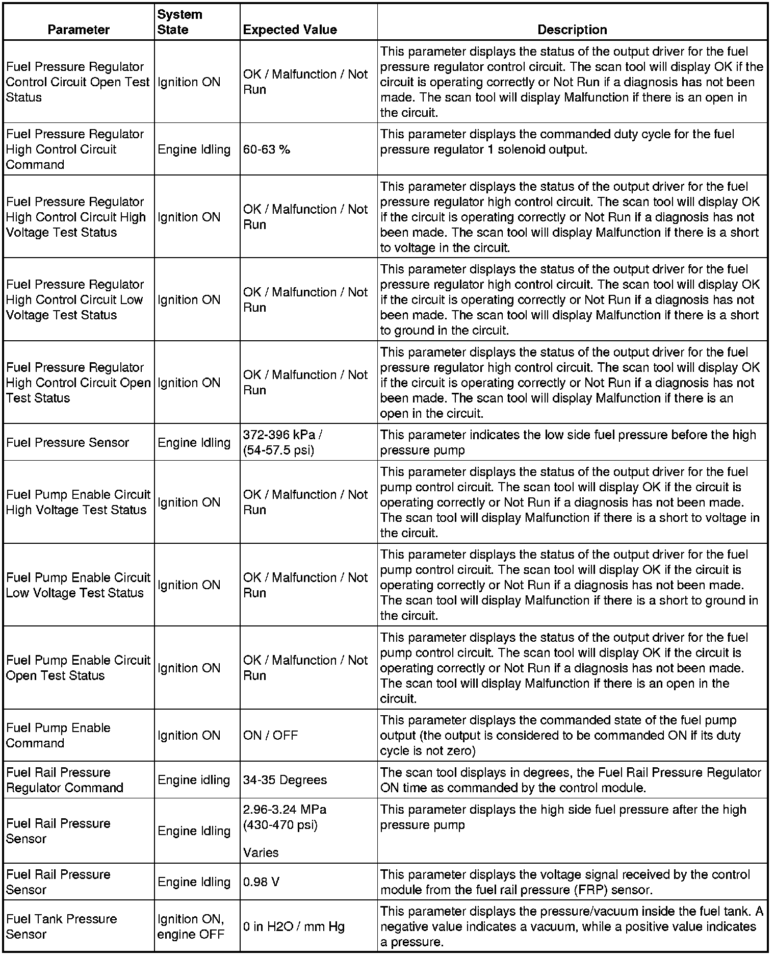 The scan tool values from a properly running engine may be used for comparison with the engine you are diagnosing. The Engine Scan Tool Data List represents values that would be seen on a normally running engine.