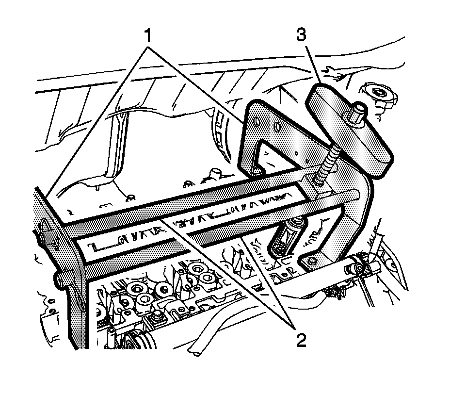 7. Install the cross bars and locks (2) of the EN-43649 - compressor to the valve spring compressor adaptors.